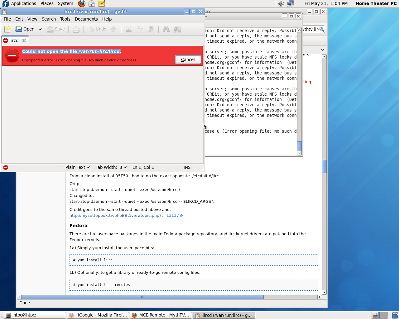 > > [htpc@htpc ~]$ modprobe lirc_i2c
